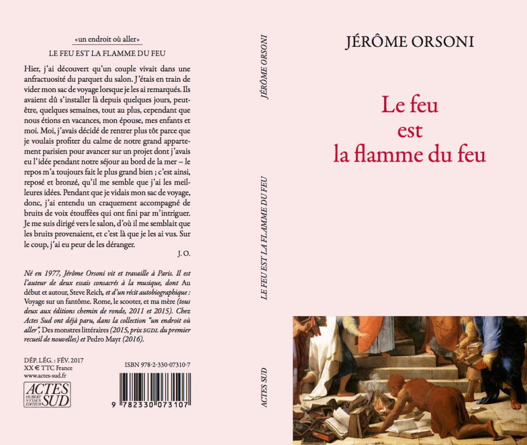 Le feu est la flamme du feu paraîtra aux éditions Actes Sud, dans la collection « un endroit où aller » le 1er mars 2017.