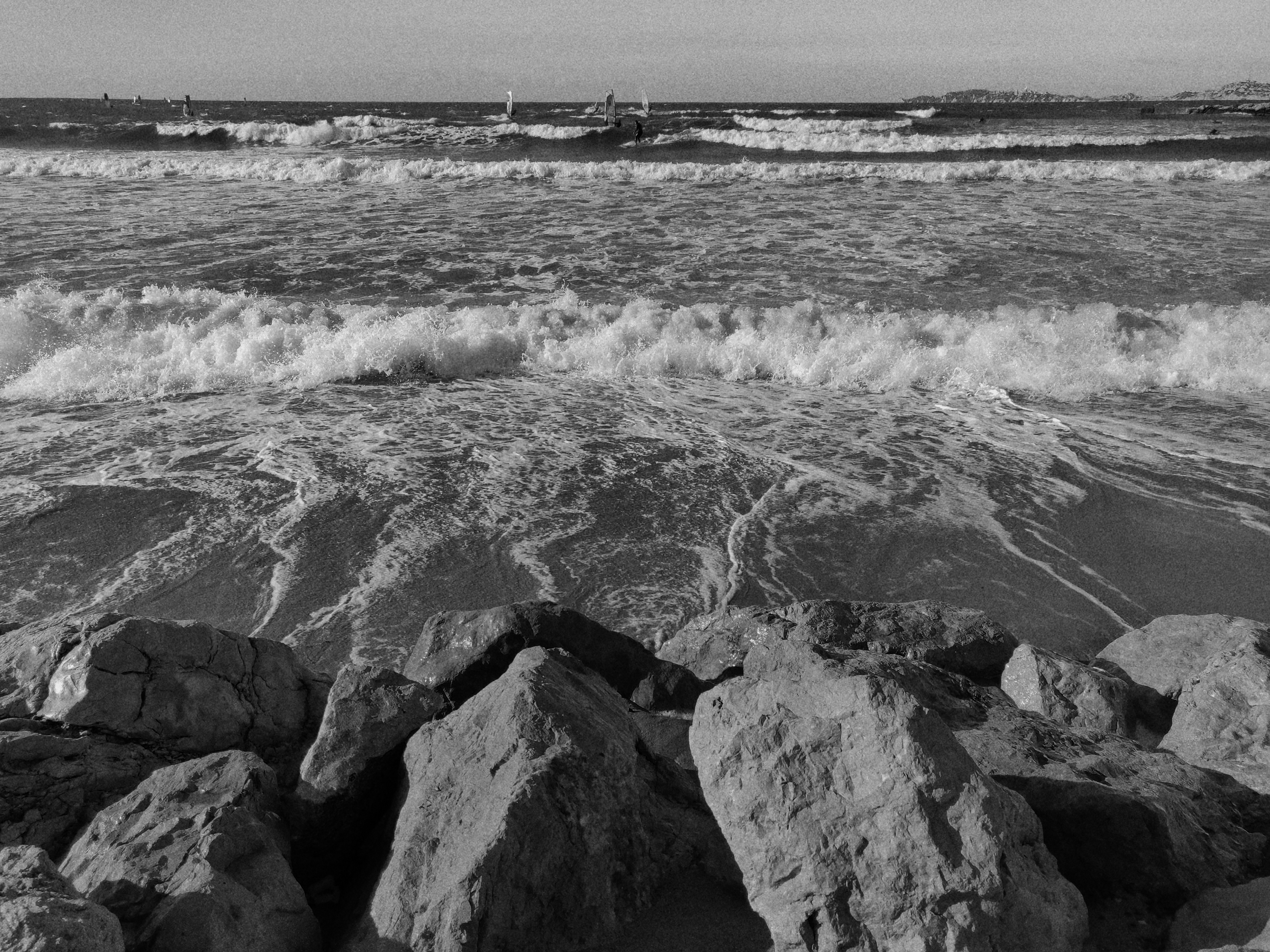 Mais assez de cette petite politique, assez de ces cerveaux étriqués, assez de ce virilisme mou (qui aime voir des matraques, ne l’a probablement ni bien dure ni bien grosse). Le vent souffle fort à Marseille. Le ciel est azurément bleu. Ai marché cinq kilomètres, jusqu’à la plage et retour. Il faisait frais et sec. Un temps pour la promenade des dieux. Qui aère la pensée, fait le vide, chasse les idées tristes comme les nuages. Lumière qui ignore le péché. Portent les ombres nettes. On s’imagine un peu trop grossièrement que la Méditerranée est synonyme de chaleur. Ce qui est faux. Une idée de touriste. La Méditerranée est synonyme de lumière. Le jour sans tâche de l’hiver. L’immaculation de l’atmosphère. Ici, je peux respirer. Ailleurs, on étouffe. La ville repliée sur elle-même, qui n’admire rien que sa propre image, est aveugle. La ville méditerranéenne est ouverte aux quatre vents. Ouverture qui fait peut parfois, car on n’a pas l’habitude que les éléments circulent. Les biens, eux, peuvent bien circuler, à condition qu’ils finissent dans ma poche. Mais que tout bouge, que tout souffle, c’est la pensée anti-bourgeoise par exemple. La ville méditerranéenne est une anti-ville. Ici, le gris ne tient pas le coup. La ville est toujours en train de se faire et de se défaire. Elle coule dans la mer. Se projette comme les embruns. Claque dans le ciel. Retombe sur terre. Devient pin, buisson, garrigue, maquis. Quand même sous le bitume, perce la végétation. Elle est toujours encore sauvage. D’un naturel sauvage.
