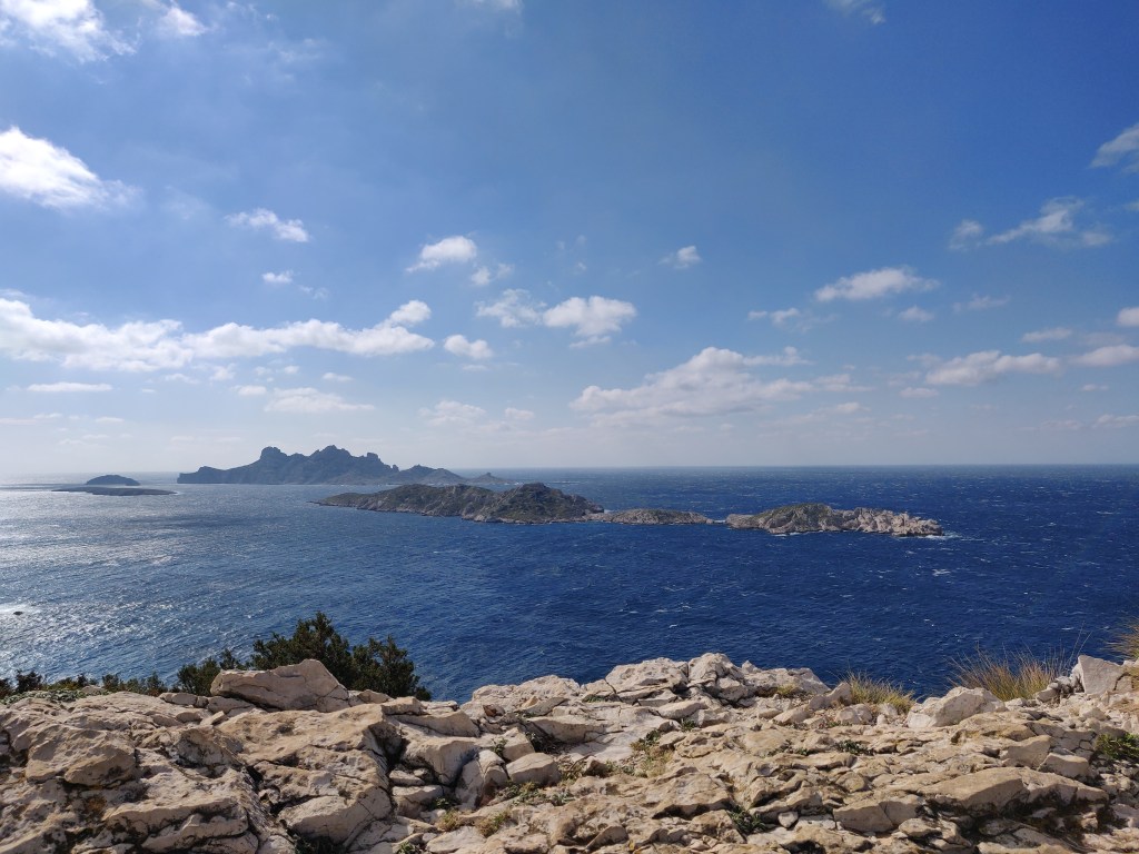 Marché avec Daphné jusqu’au sémaphore de Callelongue. Rafales à 80 km/h. Arrivée là-haut, à un peu plus de 100 mètres au-dessus de la mer, Daphné prend peur. La vue est vertigineuse qui plonge à pic dans la Méditerranée avec toute la violence du vent qui la pousse dans son plongeon. Je prends l’enfant dans mes bras pour la rassurer. Lui dis, d’un ton un peu ferme, qu’il faut être prudent, pas peureux. La peur rend imbécile. Elle tétanise, fige. Immobile, l’animal n’est plus bon à grand-chose. Est-ce que tout s’arrange quand on marche ? Mais tout quoi ? La marche avant semble l’état spontané du corps, par opposition à la position assise, il est donc logique que l’être dont le corps est en mouvement se sente mieux que l’être dont le corps est en repos. Difficile cependant d’écrire et de lire en marchant dans les calanques de pierres. Faudrait-il alors renoncer à lire et à écrire ? Oh, mieux que cela : ne lire et n’écrire qu’après s’être mis en mouvement durant un laps de temps assez long. Hypothèses gratuites ? Peut-être, mais j’en n’en suis pas certain. Car, qui s’enferme, se replie sur lui-même, se ferme au dehors, se dessèche, épuise le dedans, et bientôt n’est plus capable de rien. Se fane. Nous circulons dans les massifs de cistes, romarins, bruyères en fleurs, au milieu des petits pins et des arbustes couchés par les éléments qui se déchaînent et auxquels ils résistent quand même. Ici, se respire ce mélange de puissance et d’entêtement aux parfums sauvages qui donne l’illusion salvatrice d’être libre cependant qu’on le traverse.