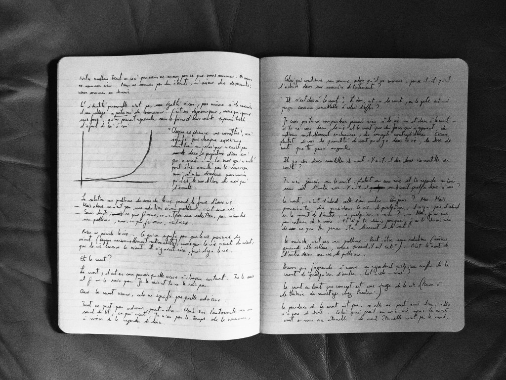 Avant j’avais les cheveux rouges et je voulais faire la révolution, aujourd’hui, j’ai les cheveux gris et mauvaise conscience, qui suis-je ? Le destin de l’Occident. Où l’on peut se demander si ce n’est pas un grand malheur pour les peuples d’être toujours dans le camp du bien ? N’importe quoi, pourvu que j’aie bonne conscience, que mon confort moral ne soit pas dérangé. Toujours la même histoire : nous avons les mains propres, mais nous n’avons pas de mains. Moins l’heure et quelque passée à courir etc., après le départ de Nelly pour accompagner Daphné à l’école, je consacre ma journée à faire de la copie pour les éclaircies, cahiers inachevés dont certains ont presque une dimension archéologique, mais que je couds entre eux pour la lumière qu’ils apportent. C’était leur destin, pour employer le même mot dans un contexte différent, c’était leur destin de devenir la toile d’un même tissage. Dans un moment d’égarement — j’étais en train de déjeuner —, j’ai pris conscience que j’avais travaillé tous les jours sans exception depuis trois cent deux jours, aujourd’hui étant le trois cent troisième. Travailler, c’est-à-dire : écrire. Pour un écrivain raté à la vitalité éteinte, me suis-je dit, ce n’est pas si mal que ça. Mais ce n’était pas ce que je voulais dire. Ce que je fais n’est pas productif et ne rapporte pas un centime, mais c’est ce que je fais. Et je ne cesserai pas de le faire, dussé-je continuer dans la même indifférence qu’aujourd’hui. J’ai passé en revue un certain nombre de noms propres (certains auxquels était assigné un signe – et d’autres auxquels était assigné un signe +), que je ne laisserai pas tomber ici, et puis je suis retourné à ma copie — je venais de finir de déjeuner : un bol de soupe, une galette de blé, une orange sanguine, voilà pour le menu. Je crois que si j’avais eu, jadis, les cheveux aussi rouges que ma révolution et que je constatais que, désormais, ils sont aussi gris que ma conscience, je me tairais à tout jamais. Ne faudrait-il pas que l’Occident se taise à tout jamais ? Mais qu’est-ce que l’Occident ? L’Occident, c’est le capitalisme, forme moderne de l’exploitation humaine (comme l’esclavagisme égyptien fut l’une de ses formes antiques), mais c’est aussi quelques notes sur un clavier qui éclairent le monde d’une sonorité pure. En définitive, et ce n’est pas une solution, c’est un problème, il n’y a pas un seul destin de l’Occident, il y en a plusieurs. La pointe tragique de l’histoire nous pousse parfois à croire que c’est dans les moments critiques qu’il se joue, mais ce n’est pas vrai. C’est tous les jours qu’il se joue. Apprenons à écouter notre mauvaise conscience, elle nous parle sans cesse, et empêche qui l’entend de ronfler paisiblement.