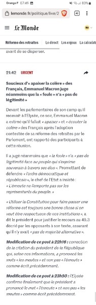 Pas de rayon de soleil aujourd’hui, — mais de cela faut-il aussi s’en étonner ? Hier au soir, alors que je peinais à trouver le sommeil, j’ai eu l’impression de tomber dans les abîmes infinis du sens : on ne savait pas si le président de la République avait dit « les meutes » ou bien « l’émeute ». À 21:42, nous racontait le journal, il avait dit : « L’émeute ne l’emporte pas sur les représentants du peuple. » À 22:16, « Les meutes ne l’emportent pas sur les représentants du peuple. » Et, enfin, à 23:50, « L’émeute ne l’emporte pas sur les représentants du peuple. » Un peu comme si se jouait, avec les aléas de l’homophonie et la profondeur inaudible de la grammaire, les verbes du premier groupe ne faisant pas entendre la différence entre la troisième personne du singulier et la troisième personne du pluriel, quelque chose du destin de la France. Ô sublime langue ! Au-delà de la possibilité d’une confusion intentionnelle, et d’un cynisme fondamentalement banal, il fallait comprendre que le langage n’appartient à personne, qu’il est là pour tout le monde, Jupiter comme les qui ne sont rien, qui signifie inlassablement même quand on préférerait qu’il la ferme. Signifier, signifier toujours plus, signifier sans jamais faillir, mais parfois trahir, c’est ce que le langage fait. Cet antimystère du langage, on le confond souvent avec son contraire, une dimension mystique qui touche à l’ineffable, à ses bornes. Or, de borne, justement, le langage n’en a pas : quoi que l’on fasse, lui dit toujours. Et s’il semble exprimer à nos dépens, c’est que nous ne le comprenons pas, ne l’acceptons pas pour ce qu’il est, à la fois le public même et ce qui touche à notre plus intime. Non que tout soit langage, mais tout passe par le langage. Le langage est le passage obligé de l’humanité. Sa merveille et son drame, si l’on veut dire les choses ainsi. Mais ce midi, alors que le chef de meute ou d’émeute, Dieu seul sait comment désormais il faut l’entendre, alors qu’il parlait pour dire je ne sais quoi, rien probablement, je ne l’ai pas écouté, mais le langage. Il faudrait accepter de se taire, non pour faire silence, mais pour entendre le langage, entendre ce qui pousse à l’expression, ce qui pousse à la signification. Je crois que, au fond, ce qui pousse à l’expression, ce qui pousse à la signification, c’est la vie même. On confond ce phénomène naturel avec la parole, avec le fait de devoir la prendre, de vouloir la prendre, de ne pas vouloir la passer. Or, c’est tout le contraire, pour entendre le langage, il faut avoir le courage de céder la parole. C’est comme avec le pouvoir : qui ne s’en déprend pas, s’y laisse prendre. Et parle pour ne plus rien dire. De toute façon, qui l’écoute ? Pas moi.