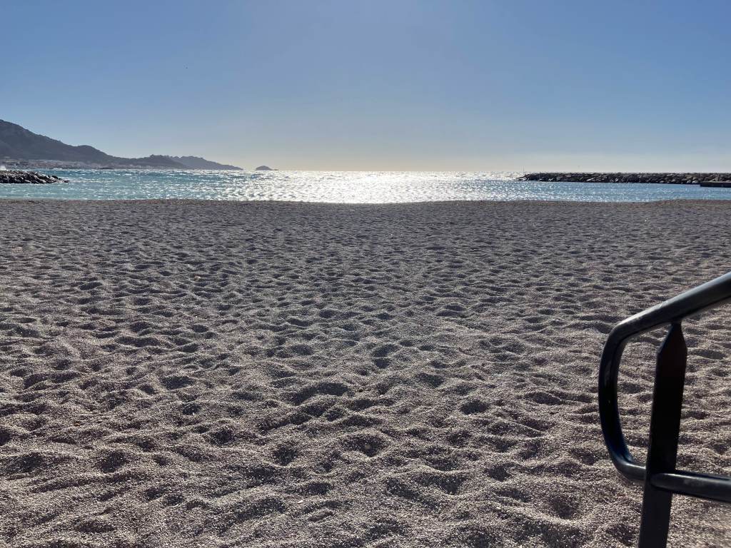 Saoul de lumière, de sable, d’air, de soleil, d’algues volantes : comme entendu hier, le vent s’est levé qui a chassé la grisaille. Je marche le long de la mer, m’en retourne m’assoir au poste antique de ma contemplation. Le trouvant occupé, je patiente quelques instants et puis m’installe à cette place, comme si je ne l’avais jamais quitté. Avant, plage des Catalans, cependant que Daphné jouait dans les vagues et le sable avec un amie rencontrée sur place (n’est-ce pas merveilleux de voir que toujours les enfants se lient d’amitié si simplement ? pourquoi l’amitié devient-elle si difficile avec l’âge ? n’est-ce pas absurde ?), j’écris un poème que je continuerai ensuite au Prado, et qui fait :
