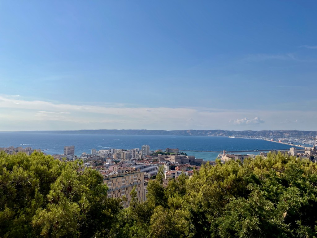 Boulevard Bompard, rue Rigaud, traverse Flotte, chemin du Vallon de l’Oriol, boulevard Amédée Autran, chemin du Roucas Blanc, impasse Blanc, un chemin sans nom, montée du Commandant René Valentin. Jeudi 21.8.2025. 26°C. Vent. Nuages. Cirrus et altocumulus. Ciel bleu teinté de blanc pur.